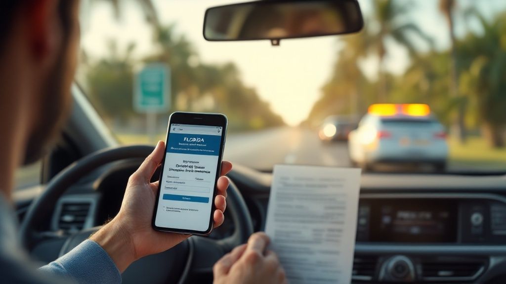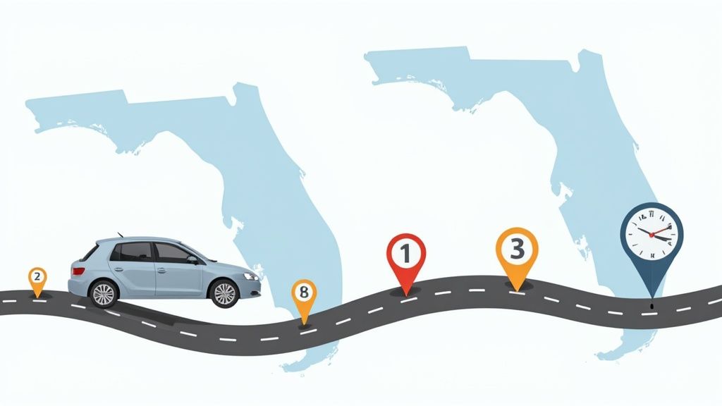Your essential guide to Florida state driving laws. Understand speed limits, DUI rules, insurance, and the point system to drive safely and avoid penalties.
