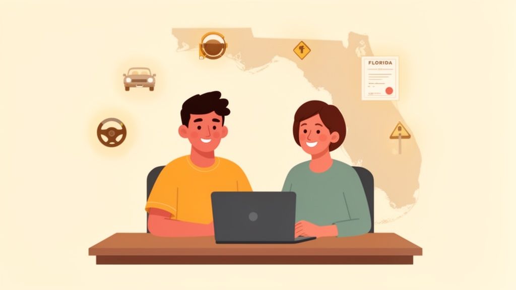 The complete guide to Florida online drivers ed for teenagers. Understand FLHSMV rules, pick the right course, and help your teen get licensed safely.