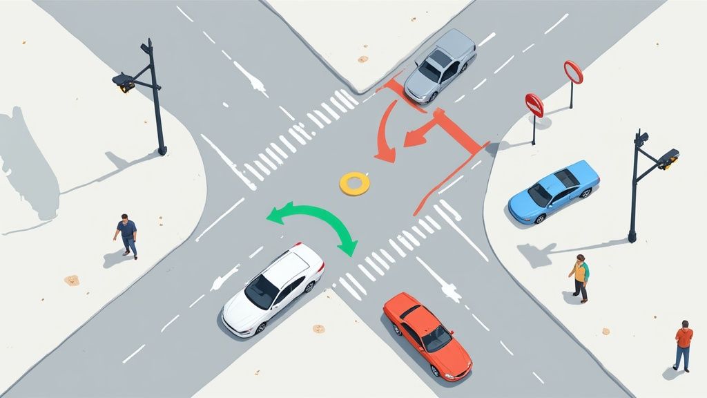 Master the right of way rules at intersections. Our guide explains traffic signals, stop signs, and yielding to drive safely and confidently.