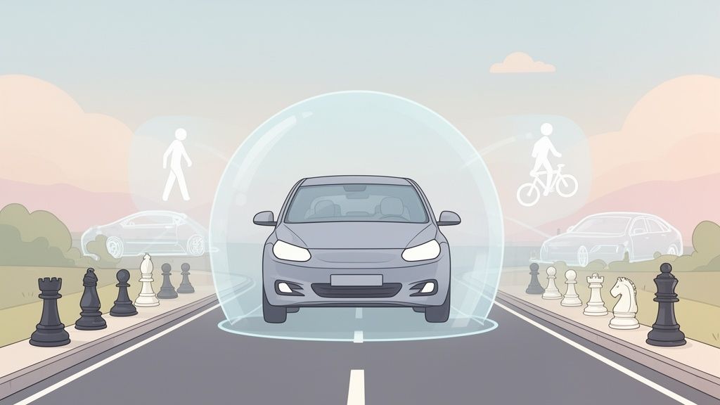 And one last thing: tell someone your plan. Let a friend or family member know where you’re going and when you expect to get there. These simple, proactive steps are the bedrock of safe driving. To build on this foundation, check out our guide on Defensive Driving techniques.